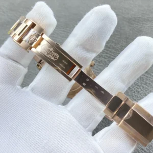 Feature 1: The movement is independently developed with all functions exactly matching the original version. Feature 2: The dial is an exact replica of the genuine version. Feature 3: The thickness is exactly the same as the original version. Feature 4: The power reserve is 42 hours, and the movement is very stable. Feature 5: The structure of the strap is completely copied from the genuine version, and the assembly method is the same as the genuine version. The crystal is made of the same sapphire as the genuine version, and when placed at the same angle, it maintains the same transparency and brightness. The case material is made based on the original data, with top-level polishing, and the texture and pattern are close to the original version.